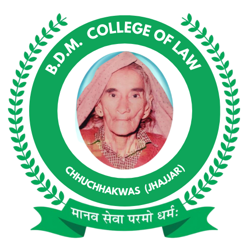 B.D.M Law College, Chhuchhakwas, Jhajjar- 124106 was established in the year 2021 with the objective of educating the youth about their legal rights and empowering them through legal education. The college is run under ages of the Amarjeet Education Society, Chhuchhakwas, Jhajjar- 124106 and affiliated with Maharshi Dayanand University, Rohtak, and recognized by the Bar Council of India, New Delhi.